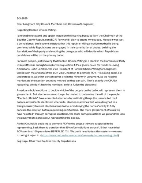 My Letter to the Longmont City Council
