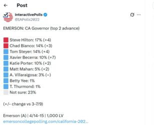 Be careful what you wish for when rigging elections… You might not have anyone to offer voters except way too many also-rans which end up splitting the vote in the primary and the top two to advance to the general end up being Republicans… lol